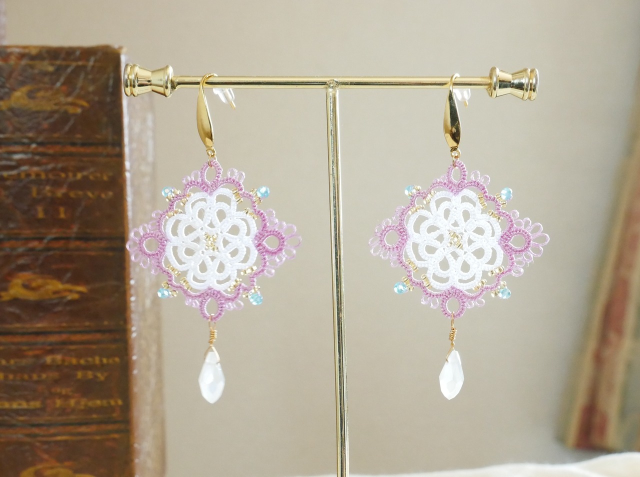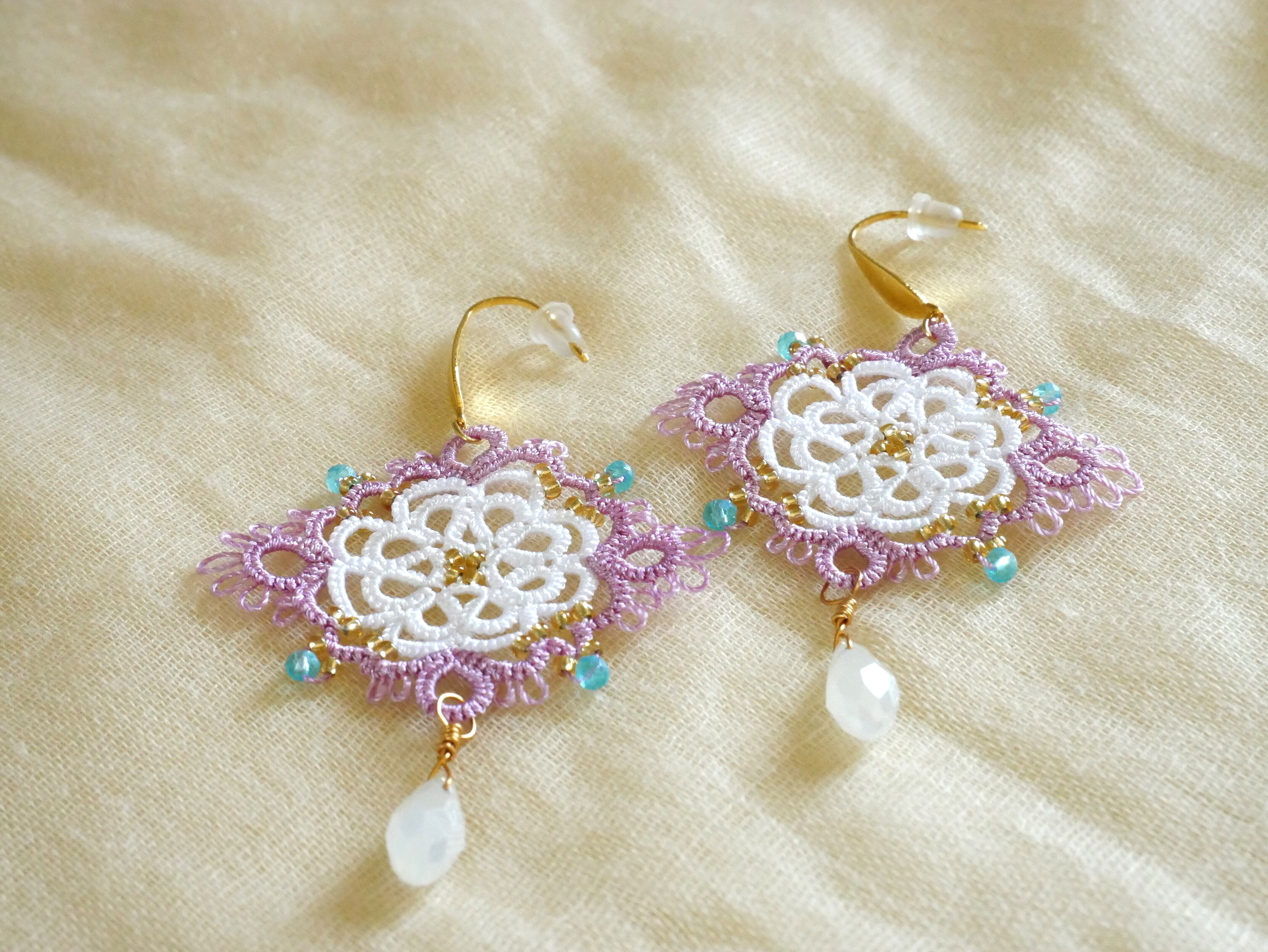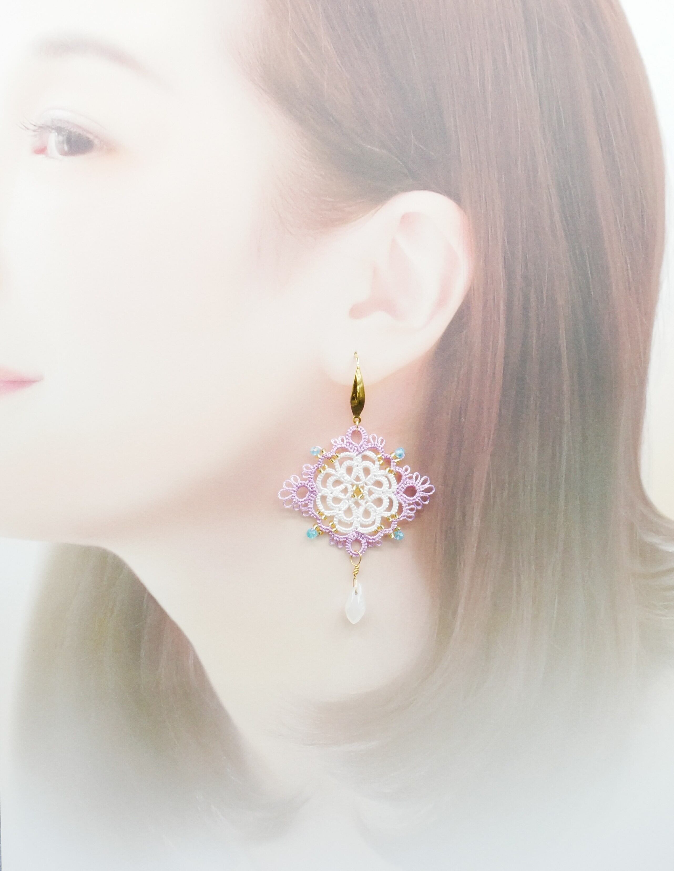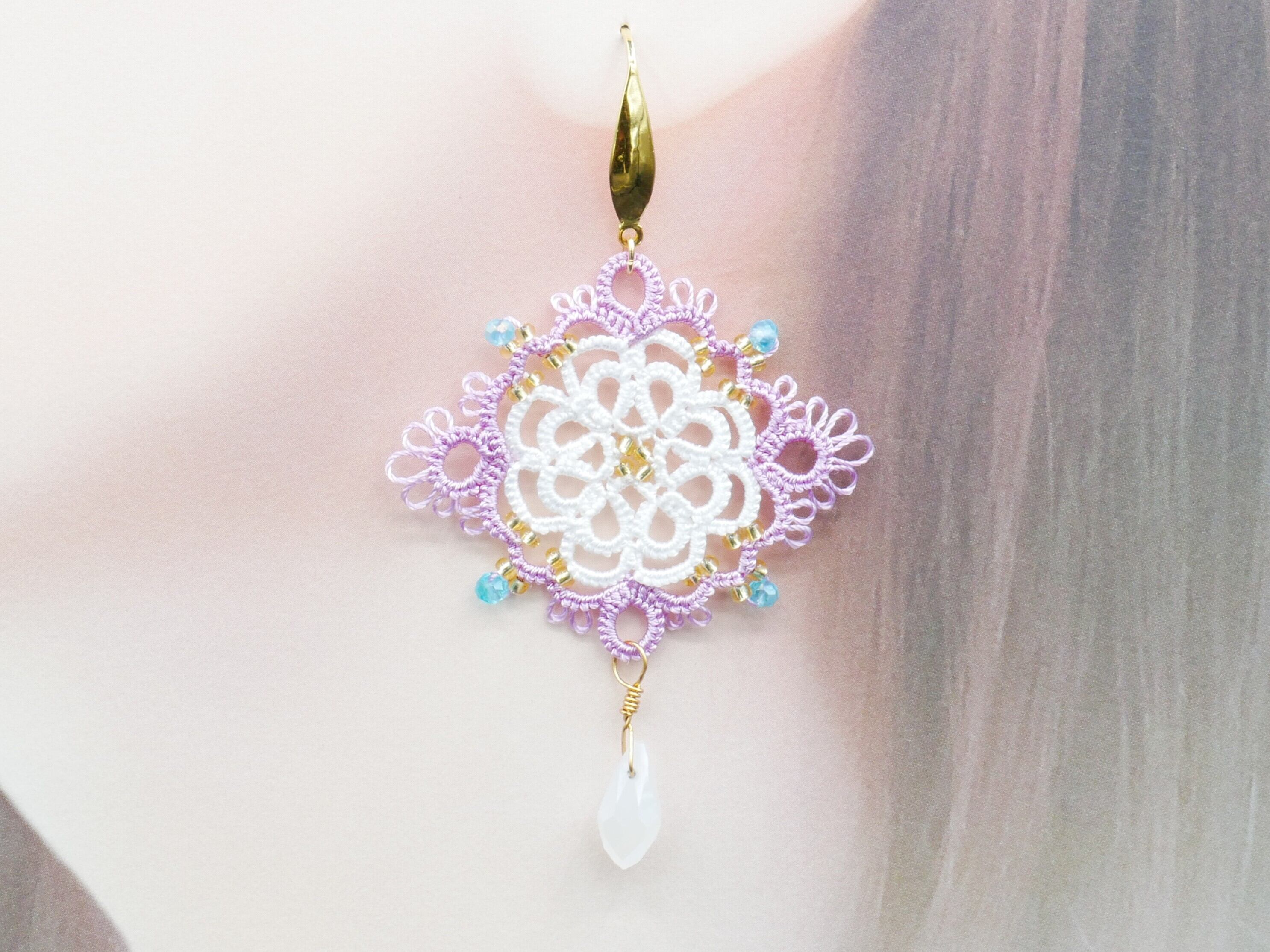繊細なレースの花びらに、光を映すしずくビーズを合わせました。