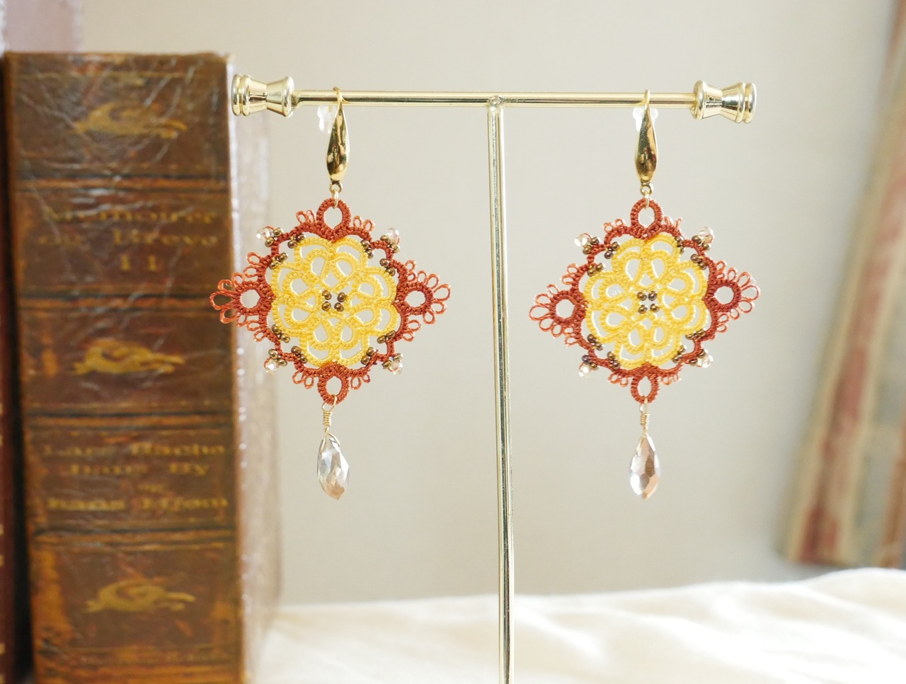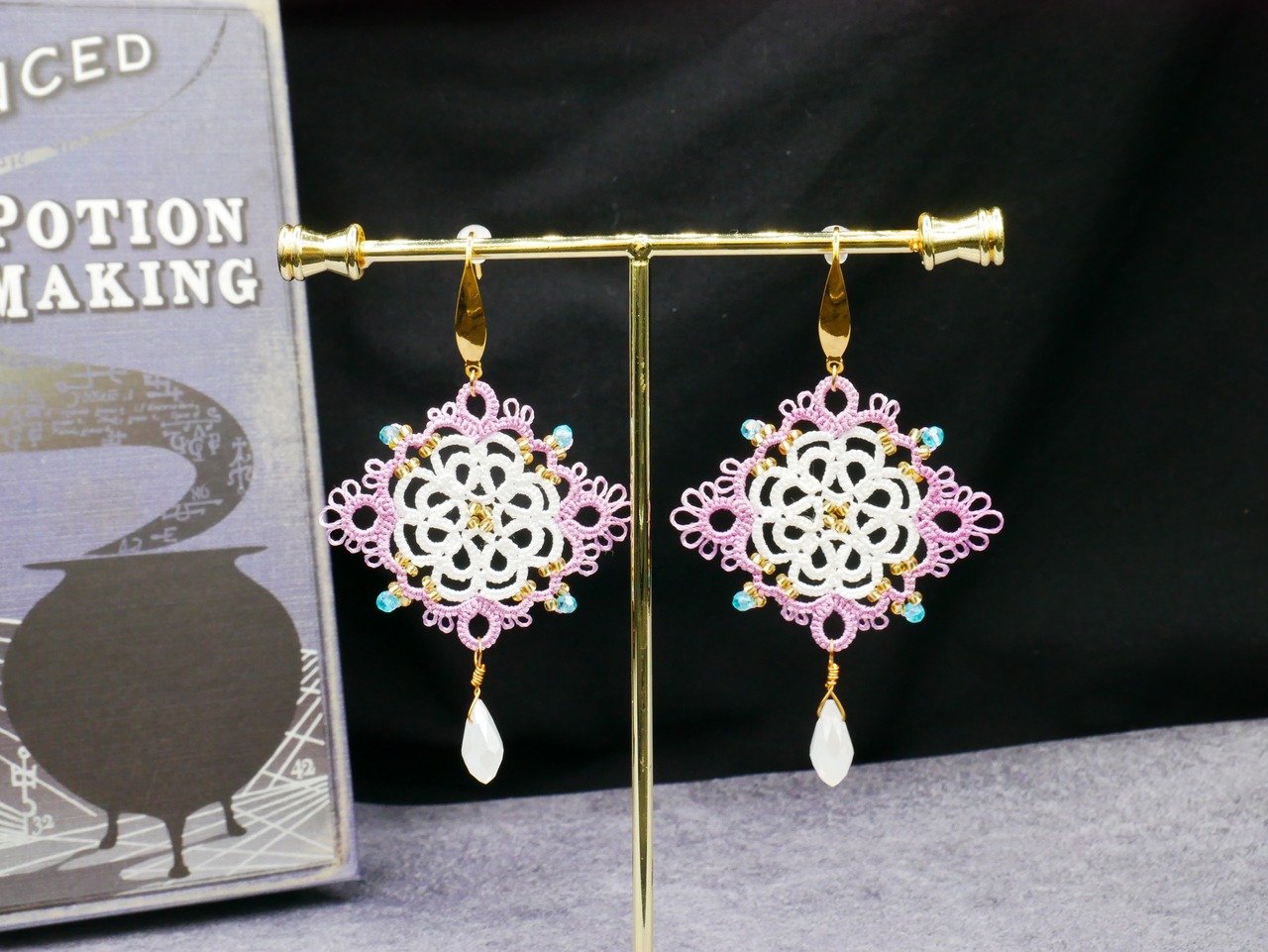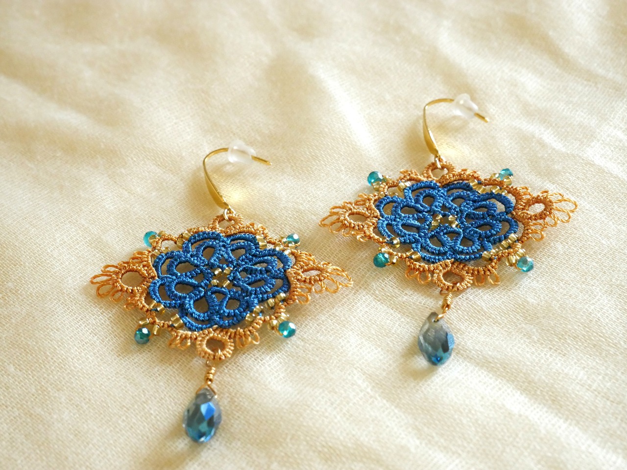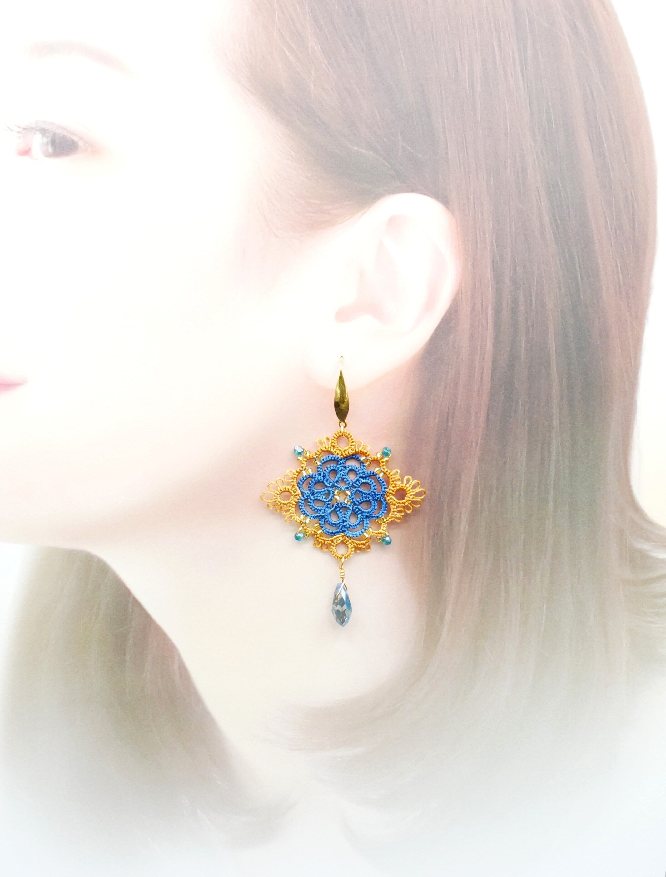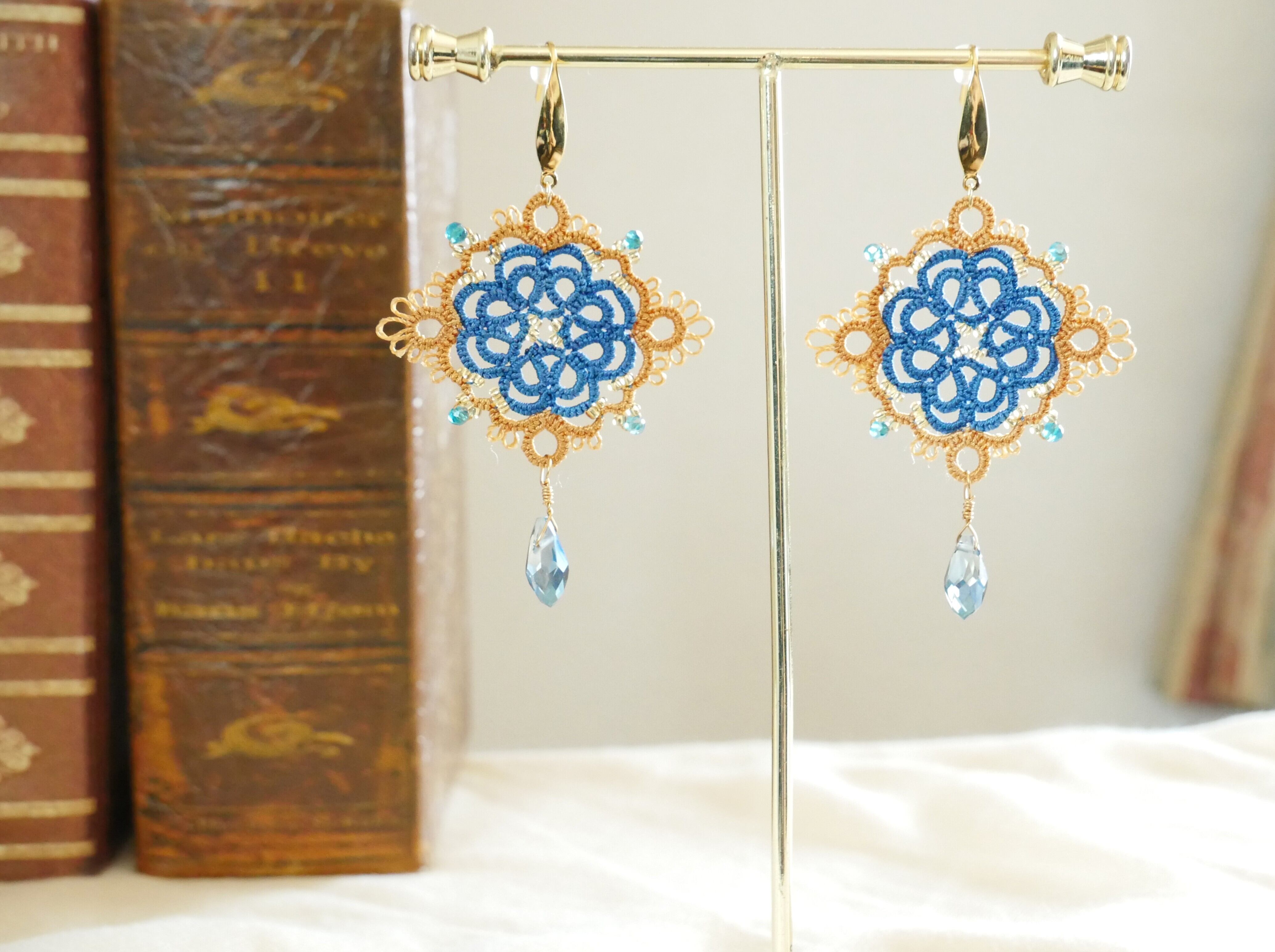繊細なレースの花びらに、光を映すしずくビーズを合わせました。