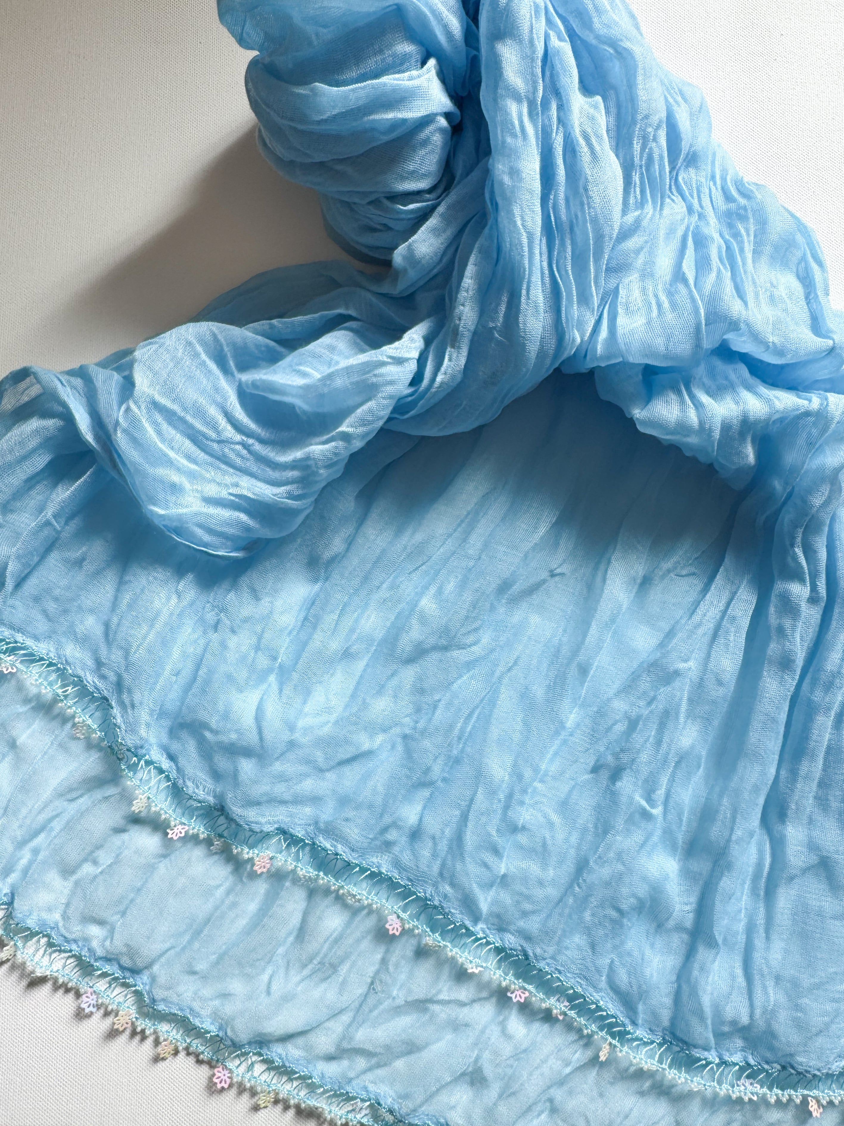 柔らかなガーゼ素材に、トルコの糸と小さなビーズで縁編みを施したストールです。