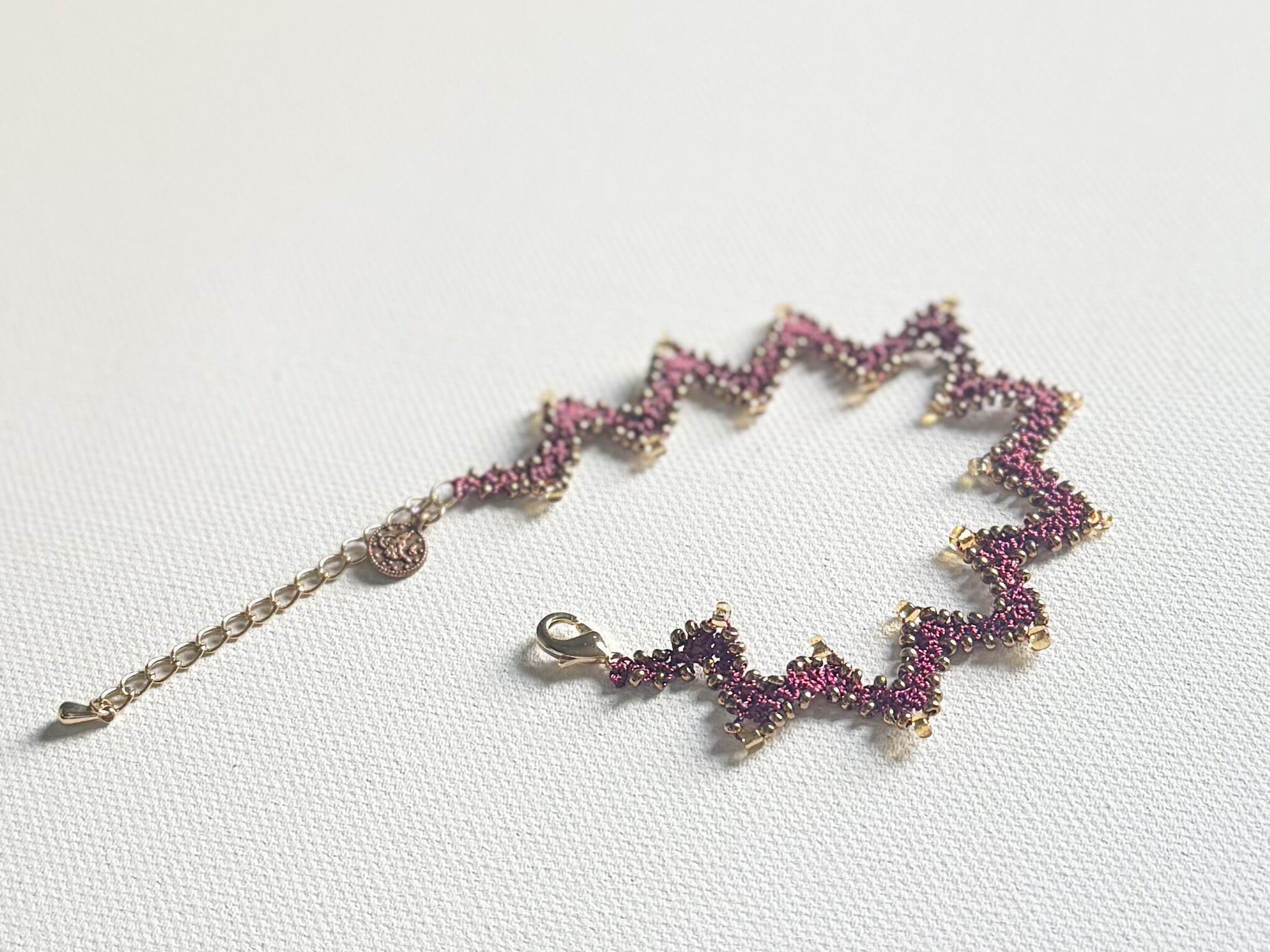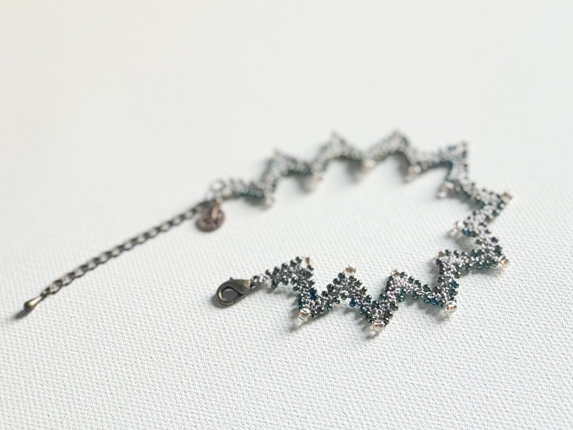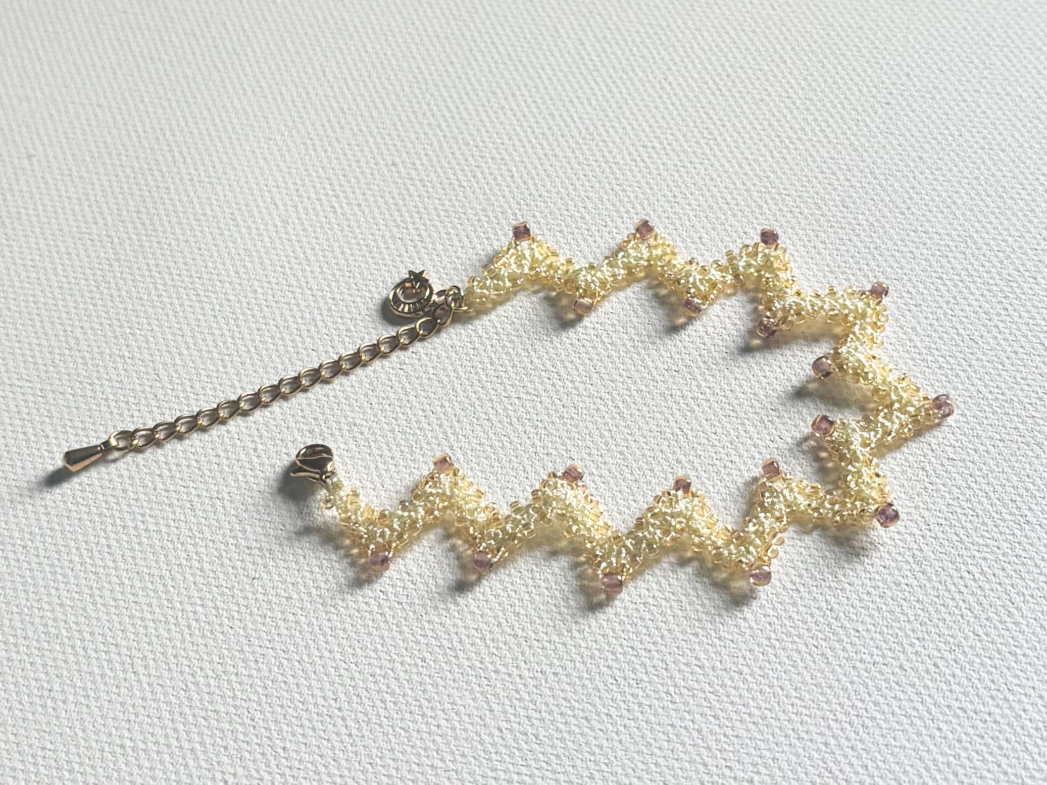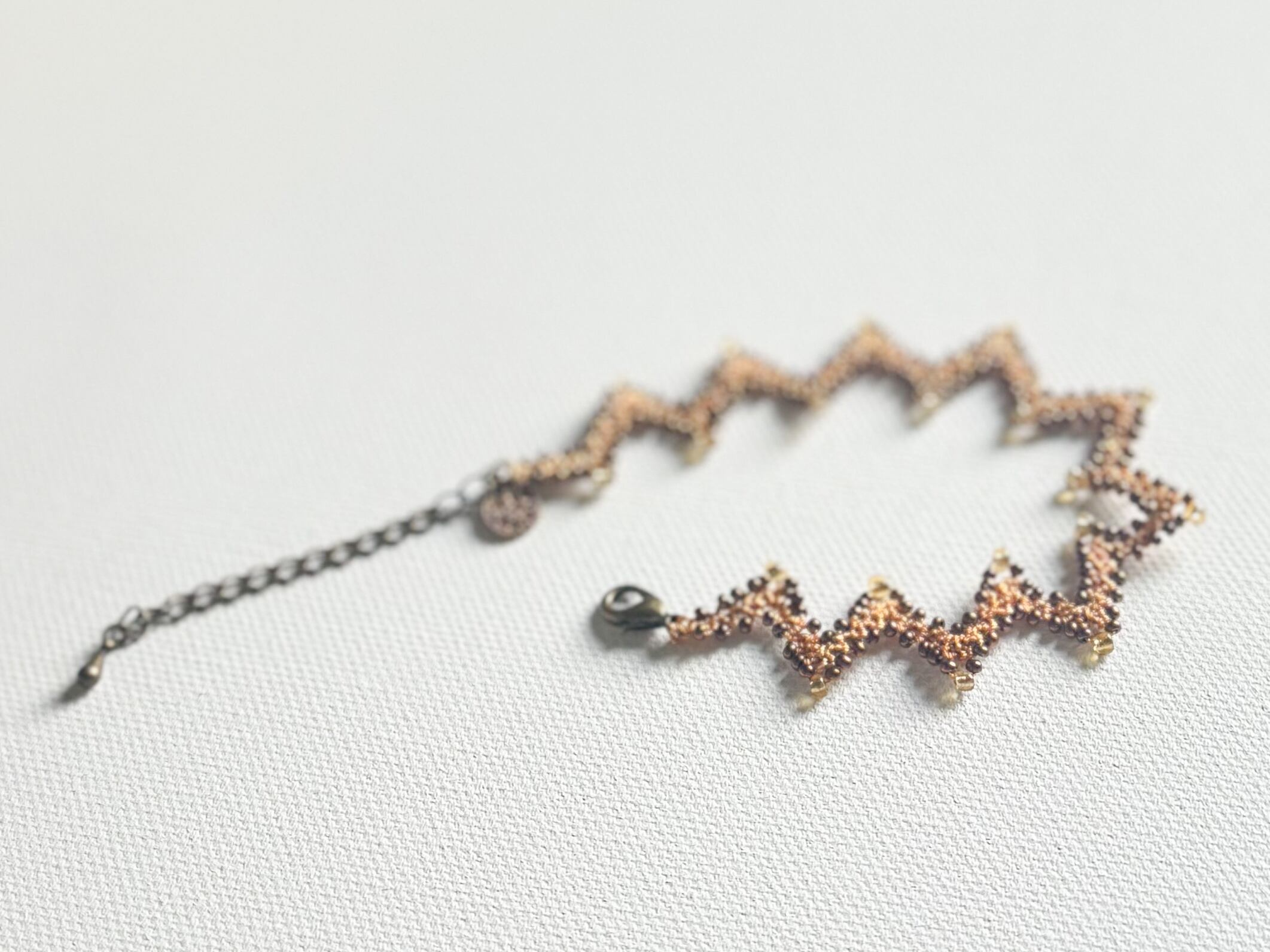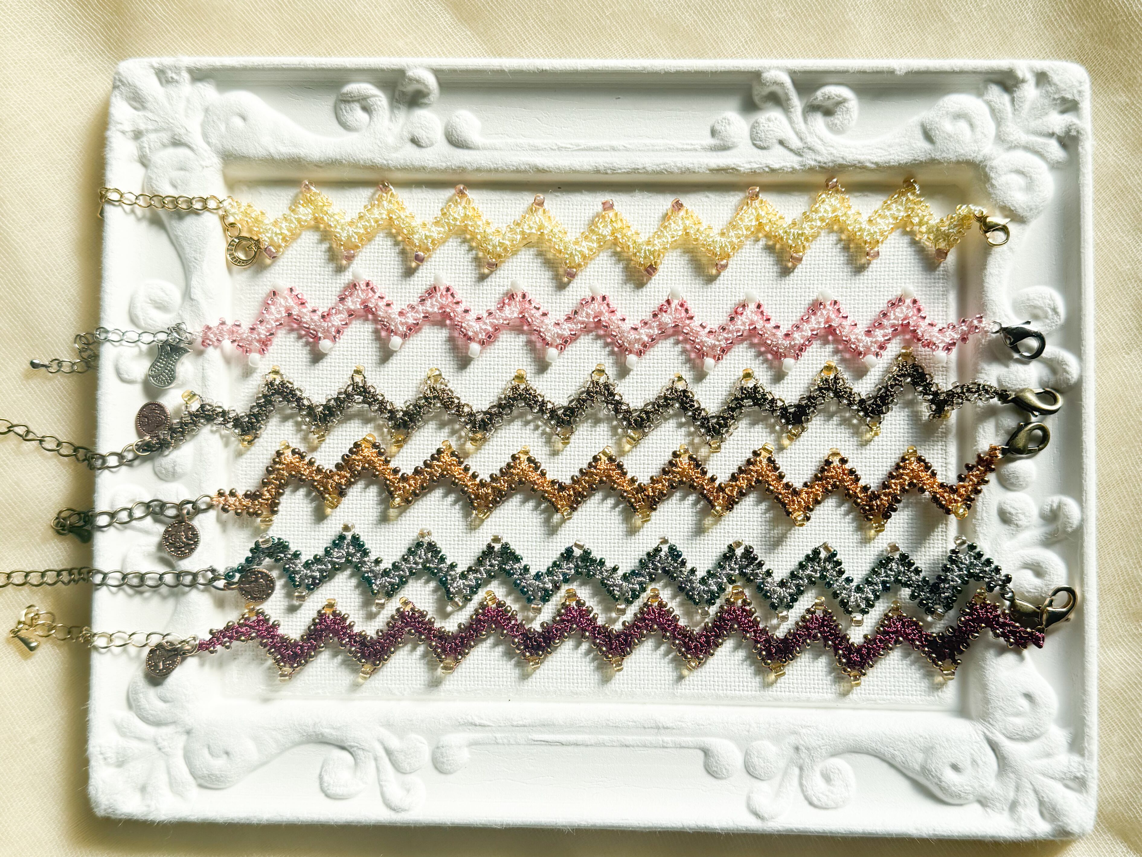 ジグザグのでっぱり部部には、あえて大き目のビーズをあしらい